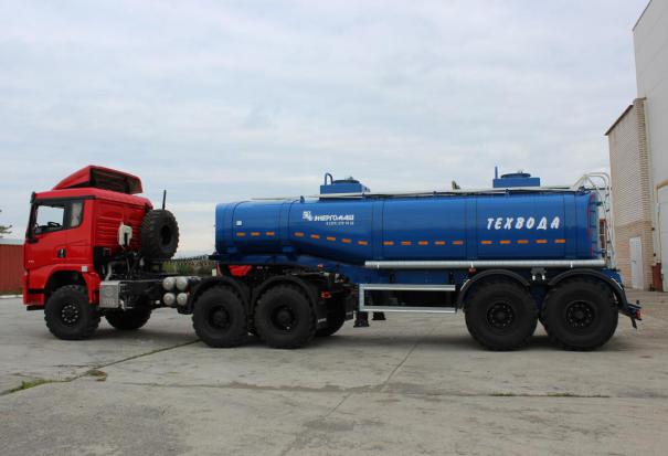 Полуприцеп-цистерна для технической воды, 20 м3, 1 секция, 2 горловины, переменного сечения чемодан, рамный, 2 оси BPW, пневматическая подвеска, ССУ 1400, односкатный, шины 385/65R22,5