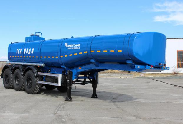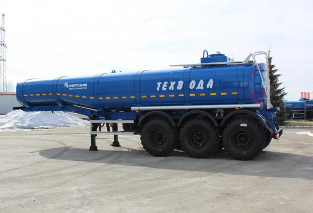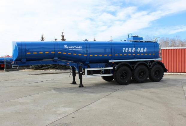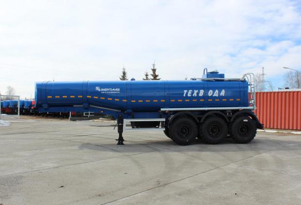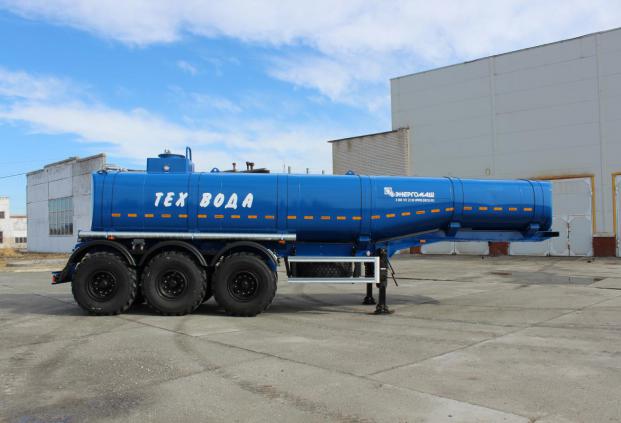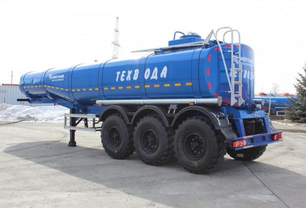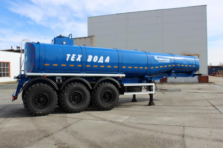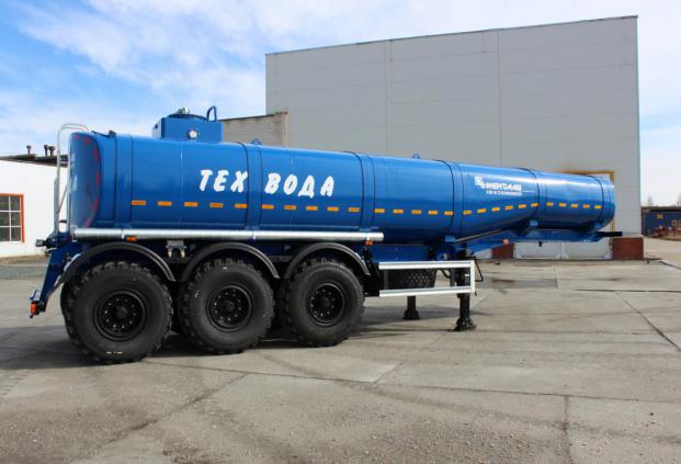 Полуприцеп-цистерна для технической воды, 26 м3, 1 секция, переменного сечения чемодан, рамный, 3 оси PLT, рессорная подвеска, ССУ 1500, односкатный, шины 425/85R21, насос СЦЛ-01А с гидроприводом